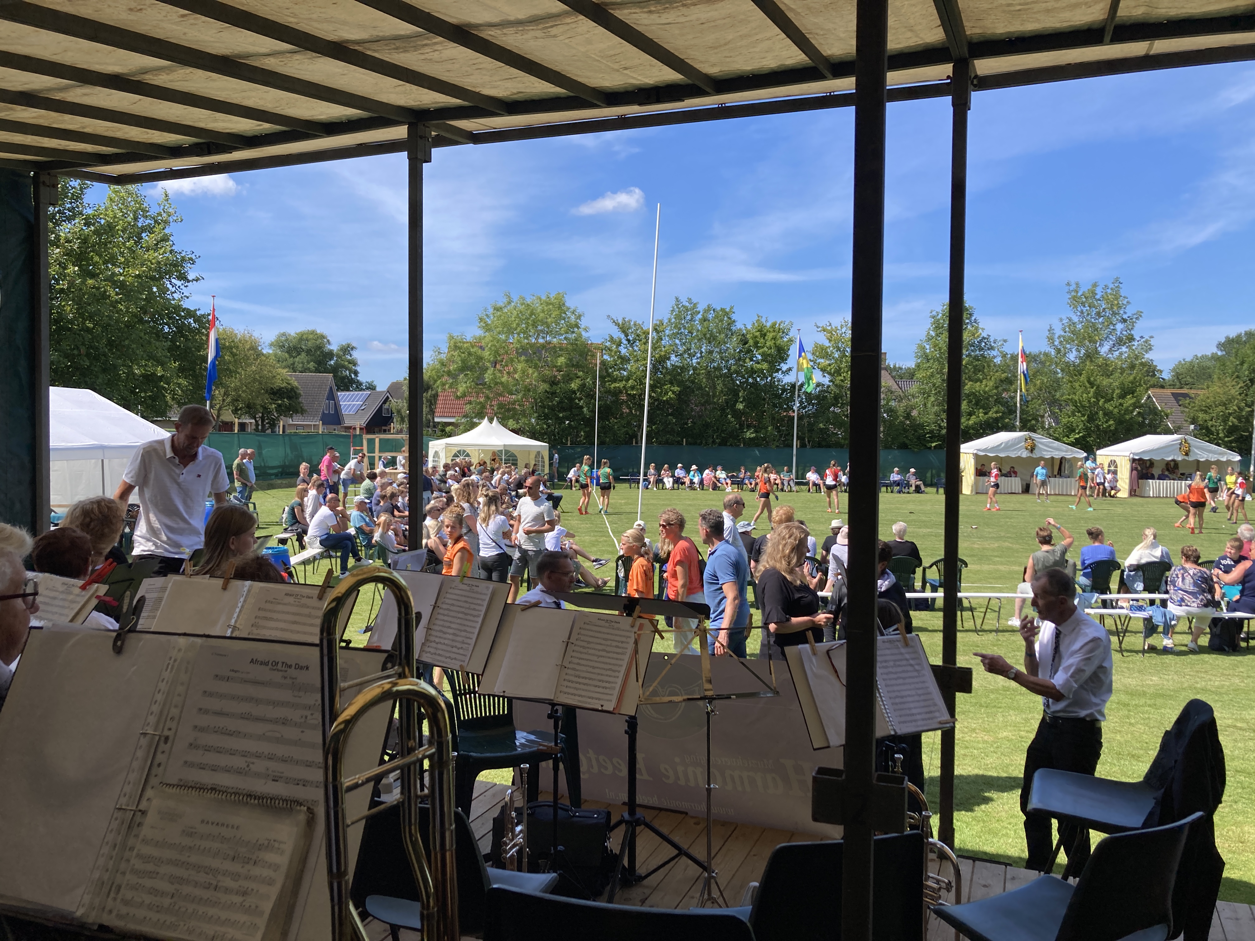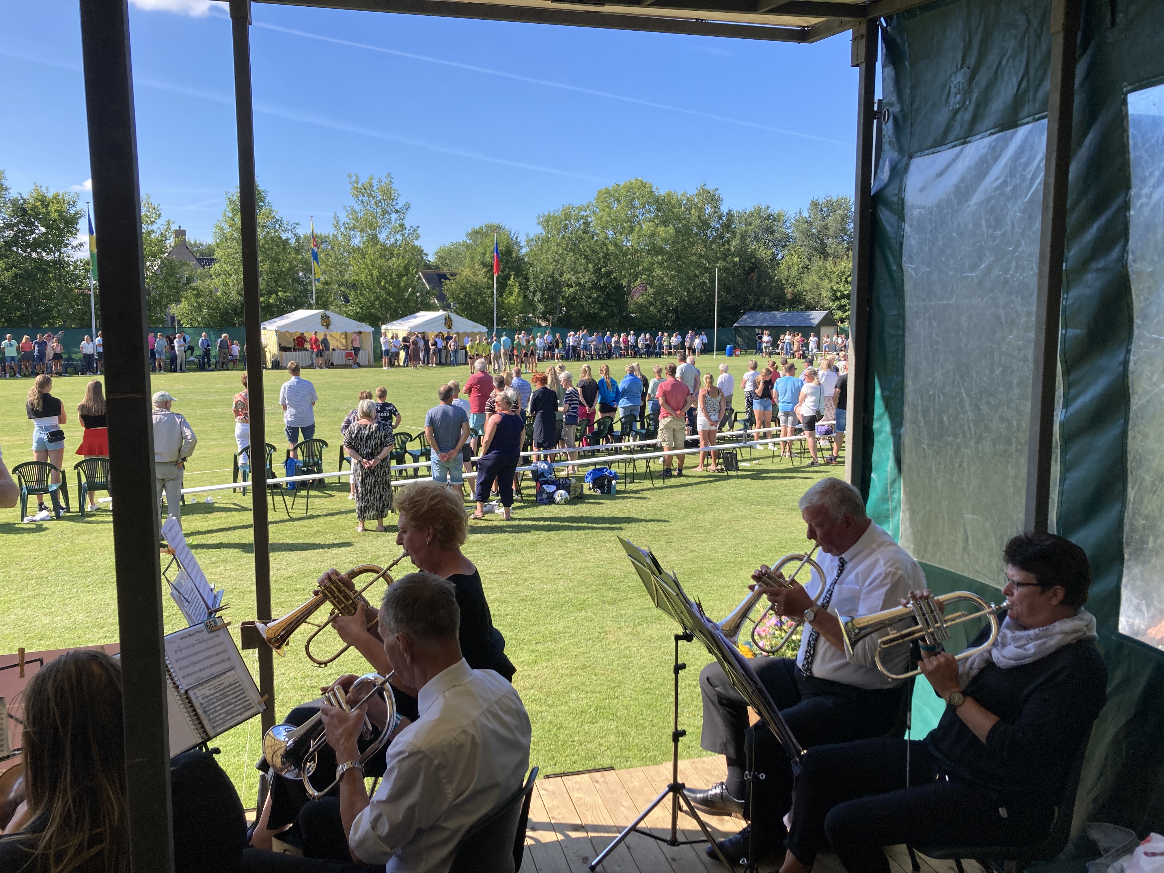 Wij spelen jaarlijks bij de Ald Meijers partij in Hitzum, zo ook dit jaar weer. We hadden prachtig weer en de dames hebben goed gekaatst!