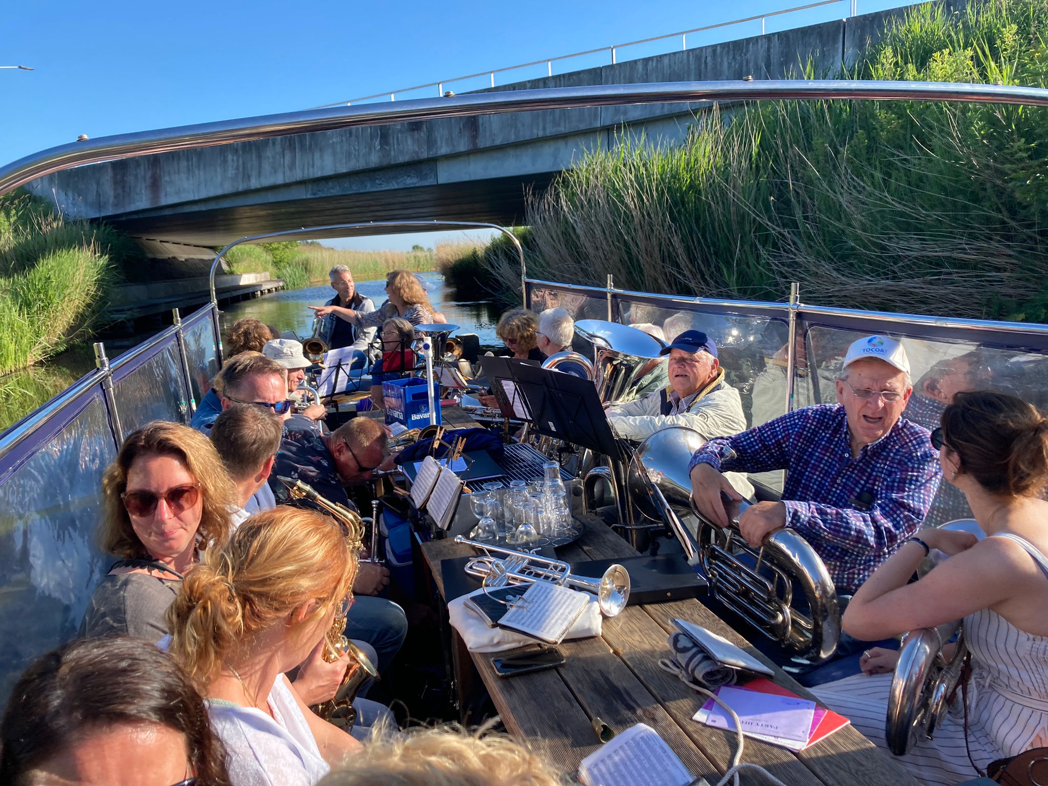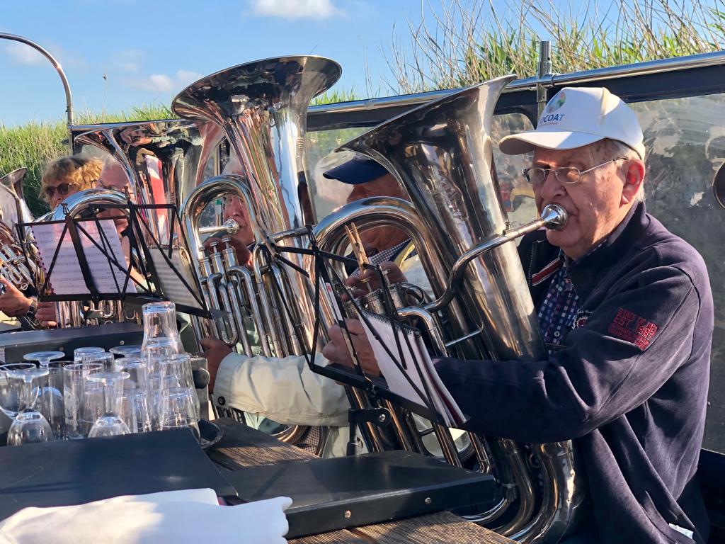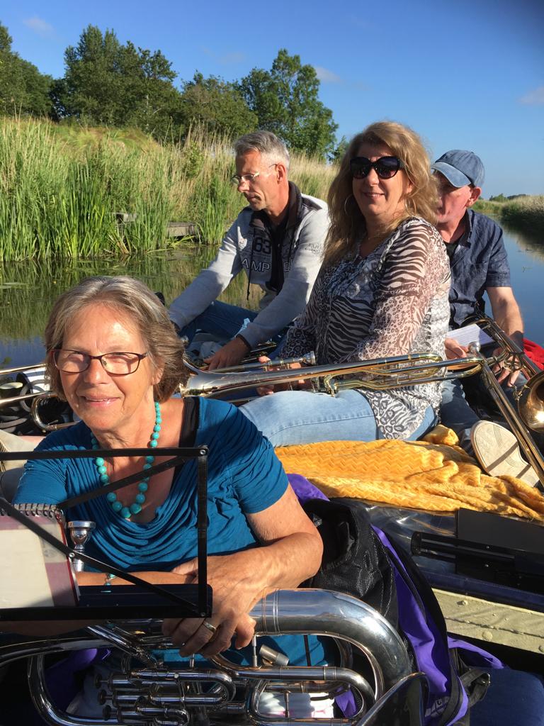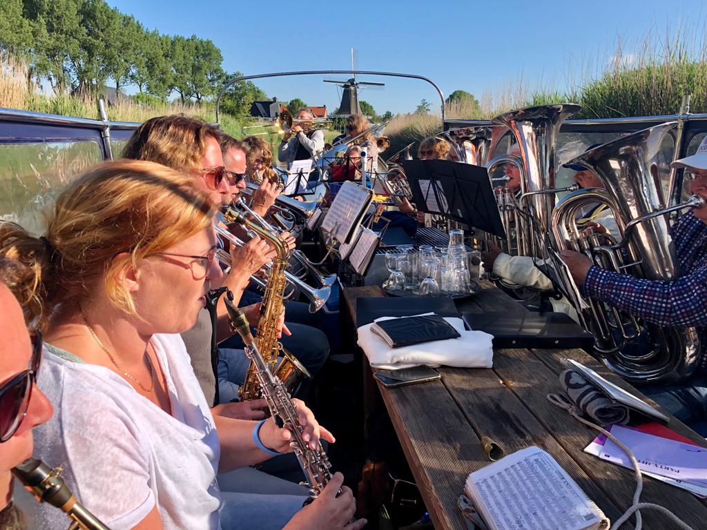 En toen was het jaar alweer om… Ondank de corona het eerste halfjaar hebben we toch een prachtig jaar gehad met een aantal mooie optredens. Gisteravond hadden we de slotactiviteit bij het Graauwe Paard in Oude Bildtzijl. Eerst op de boot varen en blazen en daarna ‘lekker ete op syn Auks!’ Hidde en Jelma waren vorige week jarig en die trakteerden op het toetje, een heerlijk bolletje ijs met slagroom! Helaas hebben we ook afscheid moeten nemen van Tialda. Na 30 jaar bij Harmonie Bitgum gespeeld te hebben heeft ze helaas besloten te stoppen. Ontzettend bedankt voor al je gezelligheid en muzikaliteit waarmee je altijd naar de repetities kwam. We gaan je heel erg missen Tialda, maar het ga je goed!!